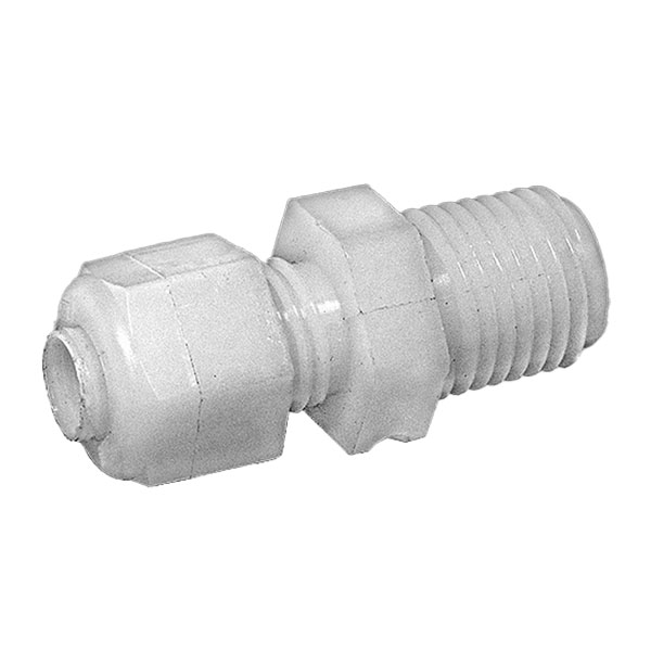 Nylo-Seal tube fittings are exceptionally strong. The bodies, made of nylon, are stronger than machined fittings of similar composition. They are furnished complete with nut/sleeve assemblies, made of acetal copolymer. Since the sleeve snaps into and is retained by the nut there is no fumbling for a loose sleeve. Just insert tube into the fitting and tighten the nut 2 to 2-1/2 full turns. Note: The most frequently used combination of tube and pipe sizes are 1/4" Tube x 1/8" Pipe and 3/8" Tube x1/4" Pipe.