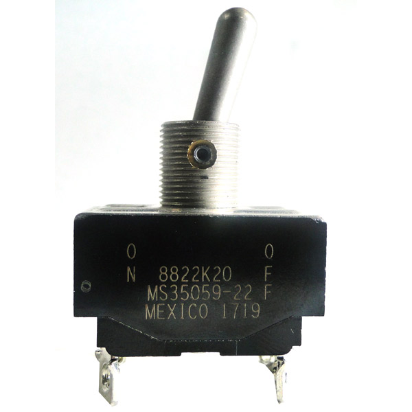 Toggle switches are available with two or three operating positions, 1 hole mounting and a variety of circuitry & electrical ratings. Contacts are made of solid silver. Wide usage is found in aircraft, mobile, marine, electronic and industrial applications. Available in full "AN" standard size & Ultra Miniature 1/2" size. Leading manufacturers of toggle switches are Micro Switch, Alcoswitch, Cutler Hammer, & JBT, now Cutler Hammer. Orders will be filled with switches of the manufacturer whose product is available in local stock. Note: * Momentary Contact |