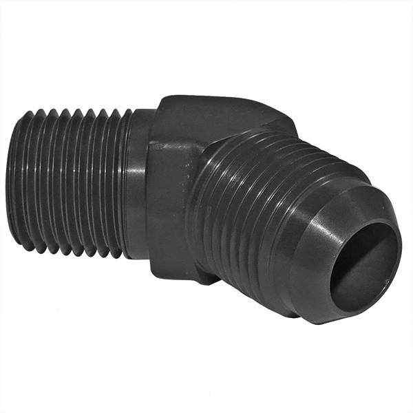 | Elbow, Flared Tube and Pipe Thread, 45°. Available in Aluminum(D) or Steel. |