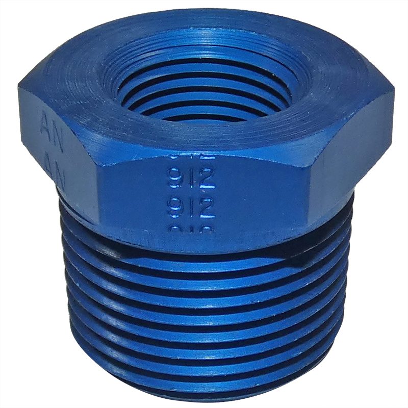 This bushing enabled me to connect a 75 psi 1/8 threaded fuel sensor into an aluminum manifold that has 3/8 (-6) fittings. This aluminium fitting screws into an aluminum manifold, thus maintaining similar metals.