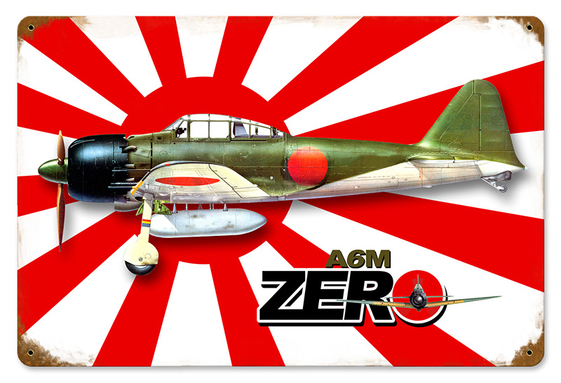 This Zero vintage metal sign measures approximately 18-inches by 12-inches. Unlike most tin signs, they design and make their signs in the United States using 24 gauge American steel and a process known as sublimation, where the image is baked into a powder coating for a durable and long lasting finish. This sign is drilled and riveted for easy hanging. |