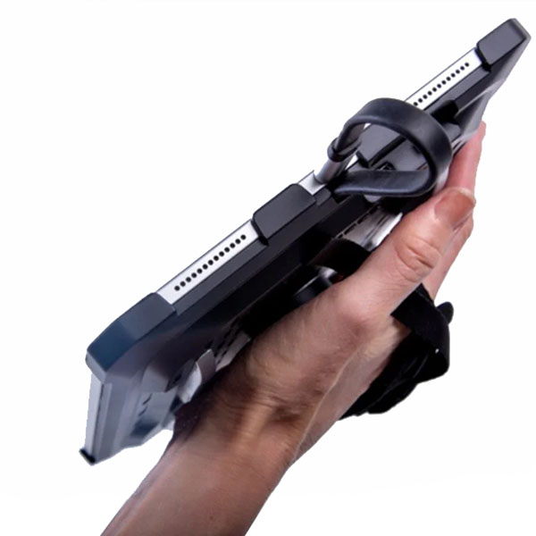 • Secure your iPad on the go! Our iPad Hand Mount allows you to grip your iPad or tablet while maintaining a full range of motion. The secure, quick release, and adjustable strap pairs with a solid aluminum base. Included is an adjustable, shock absorbing neck strap that quickly clicks in or out to secure the iPad from a fall, and a hand strap that locks into MyGoFlight's iPad Sport Case, Cool Case, & or Cradle. The Hand Mount can be used with or without the neck strap. No dropping. One hand operation. Ultimate security. Whether for aviation, construction, outdoor order processing, field work, travel or play, the Hand Mount is a single solution for a range of applications. Included in the box: Hand Mount with Cushion hand piece and elastic, adjustable strap. Compatible with any tablet from 7 inches to 11 inches