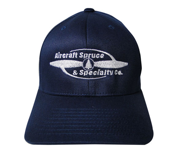 Our heavyweight 100% brushed cotton hat is perfect for aviators. Low profile cap has "Aircraft Spruce ® & Specialty Co." stitched on front panel. A great looking, top quality cap. Flexfit L/XL, one size fits all. Available in Black or Navy Blue. |