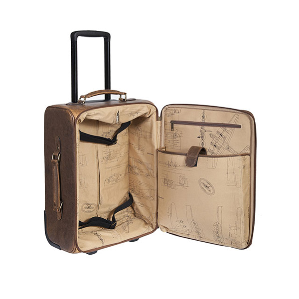 Lambskin wheeled carry-on. Telescoping handle with in-line skate wheels. Exterior front zip compartment with file section & pockets for discs. Exterior back zip pockets. Roomy main compartment with support straps. Compartment for laptop. Import. Dimensions: 13L x 18H x 7W |