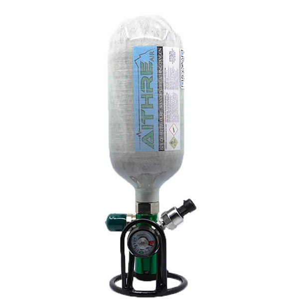 The Aithre personal oxygen bottle is constructed from lightweight composite carbon fiber with an aluminum lining and is designed for private aviation. Offering a 2000 PSI working pressure, simple on-off gauge, and an adjustable flow regulator, this bottle is ideal for pilots in private GA aircraft with flow rates as high as 25LPM.