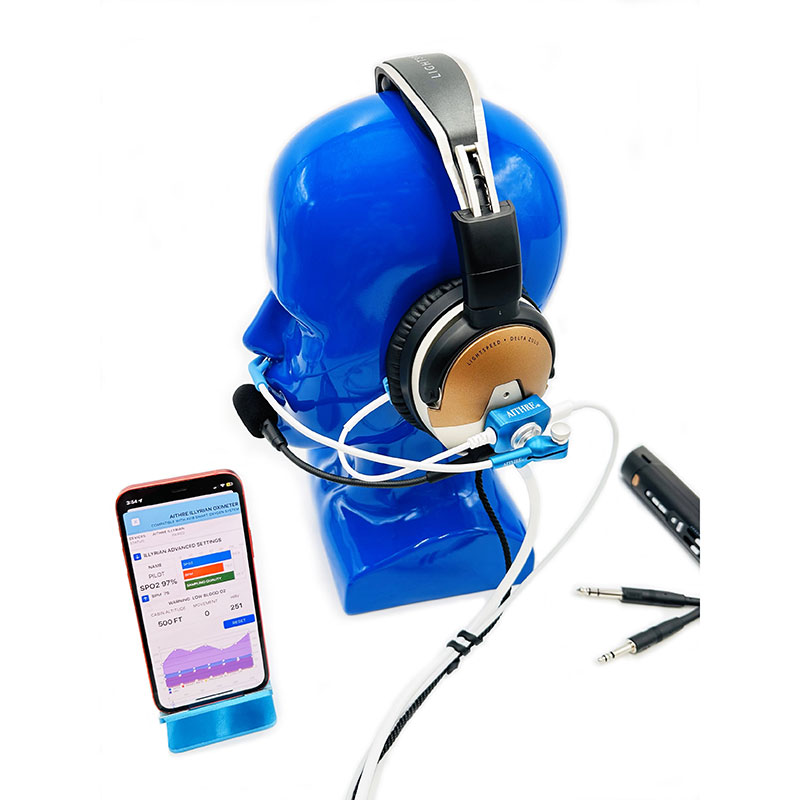 This new revolutionary product delivers on Aithre's commitment to innovation and safety in flight with another first ever - a headset haptic safety wearable. Featuring an improved silicone pad and a built-in pressure altimeter, oximeter, heart rate and variability monitor, movement detector, and optional connectivity to the Aithre Connect iOS app for cabin temperature and carbon monoxide sensing, the Illyrian II is packed with useful technology. This tiny wearable will transform your existing headset into a complete hypoxia and health safety monitoring solution with optional and controllable haptic feedback for a variety of use cases, including: depressurization, heart rate surges, low blood oxygen, absence of head movement, high cabin temperature, and elevated carbon monoxide, and the embedded potential for much more. The Illyrian II converts any active noise cancelling headset into a safety wearable using simple 3M adhesive that will not leave a residue and is removable. The tiny unit is usable in a variety of configurations for headband or under the earcup oximeter placements. Moreover, the Illyrian II is constructed from lightweight aluminum - anodized and laser etched - which will elevate the appearance of your headset and visually demonstrate your commitment to safety, without adding measurable weight or size. Additionally, the unit optionally supports mounting of the Aithre boom cannula of the left earcup, for an all-in-one oxygen delivery and hypoxia safety monitoring and alert system. The popular aluminum Aithre boom cannula is sold separately. The haptic headset feedback is a first for aviation and one of the highlights of the Illyrian II. The use of repetitive audio speech for warnings can be obtrusive when flying an aircraft and engaging in communications with ATC or passengers. Instead of disruptive speech, the Illyrian II relies upon a subtle haptic vibration that is amplified by the earcup of an active noise-cancelling aviation headset so it can be heard and felt. This new modality provides information effectively, yet unobtrusively, and in a manner that is imperceptible to anyone else in the cabin. The haptic vibrator settings and controls can be setup via the app, and felt via your headset, due to high levels of biologcial touch receptors around the ears. A simple pattern alerts the wearer to safety issues without auditory disruption and without requiring an expensive headset upgrade.