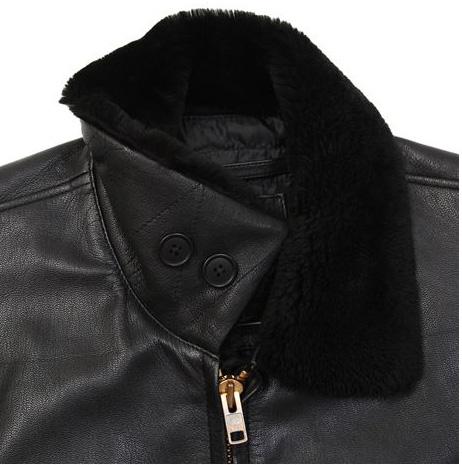 Alpha's reproduction of the coveted naval leather flying jacket featuring a genuine mouton fur collar. |