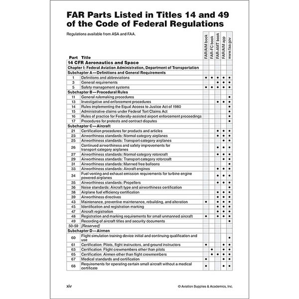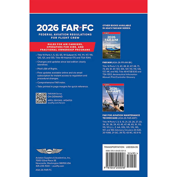 ASA’s FAR/AIM Series books have been the standard regulatory reference of the industry since 1940. ASA consolidates the FAA regulations and procedures into easy-to-use reference books of information pertinent to pilots, flight crew, and aviation maintenance technicians.