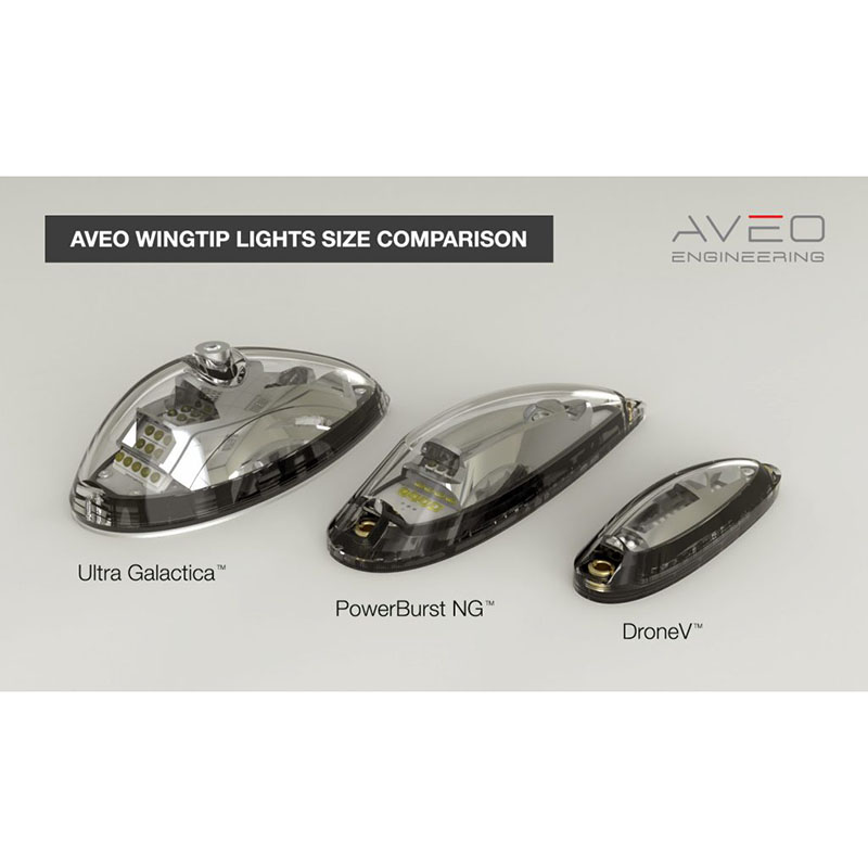 Incredibly tiny micro-circuitry featuring all the proprietary advantages of Aveo technology are packed into an extremely light aerodynamic form factor. Featuring 2019 CREE latest highest efficiency LEDs. EU Drone Compliant Note: Not approved for installation on certified aircraft. This is not a TSO certified light. |