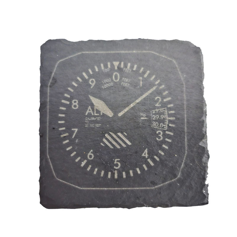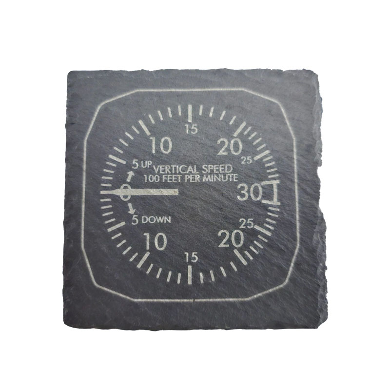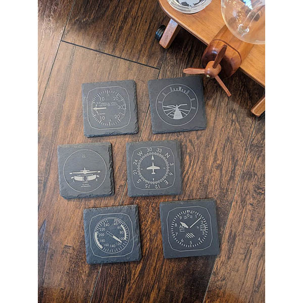 This Aviation “6-pack” slate coaster set is a must-have for aviation enthusiasts and pilots alike. This set of six unique coasters features laser-engraved designs of aviation instruments, inspired by the iconic “6-pack” found in aircraft cockpits. Each coaster showcases a different instrument, including an altimeter, airspeed indicator, compass, turn coordinator, vertical speed indicator, and attitude indicator. Our Aviation Instrument Slate Coaster set is an ideal gift for the pilot in your life.