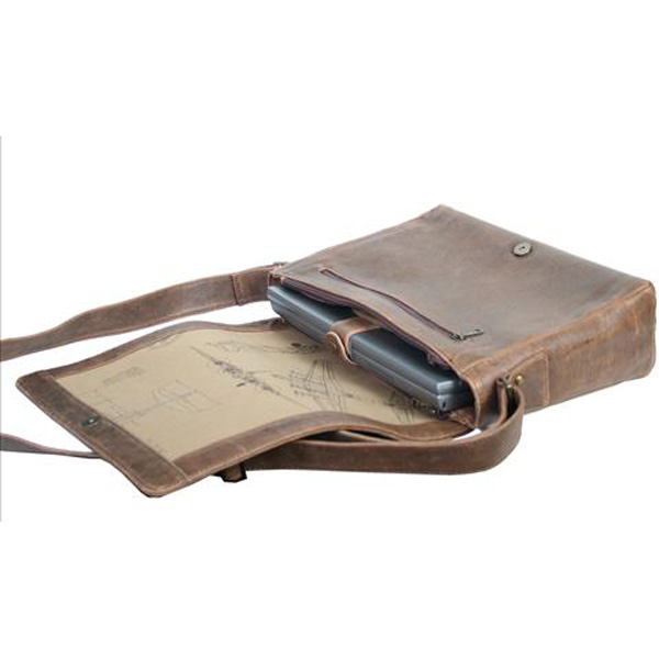 Lambskin messenger brief bag for laptop. This bag comes with a front outer zip pocket under flap and a single gusset inside zip pocket in back and small open pockets in front. |