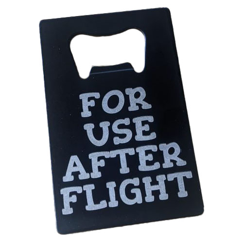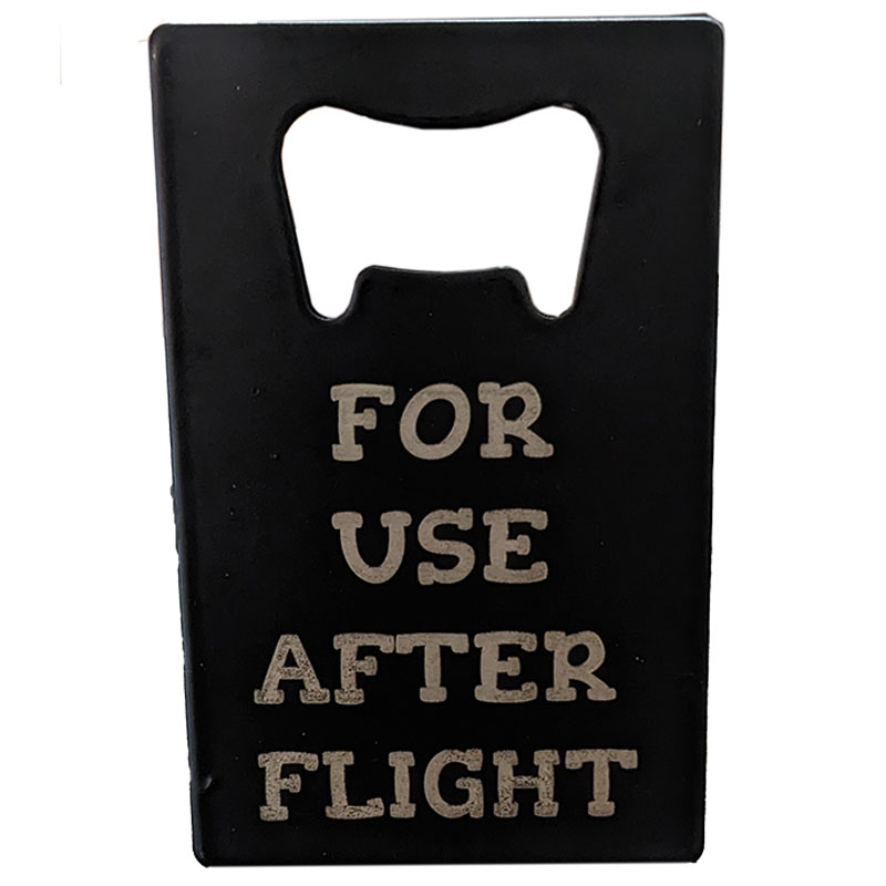 “For Use After Flight” Steel Bottle Opener, is the perfect companion for pilots to relax and unwind after conquering the skies. Crafted with precision and a touch of humor, this bottle opener is a must-have accessory for those who appreciate the thrill of flight and the joy of a well-deserved refreshment.