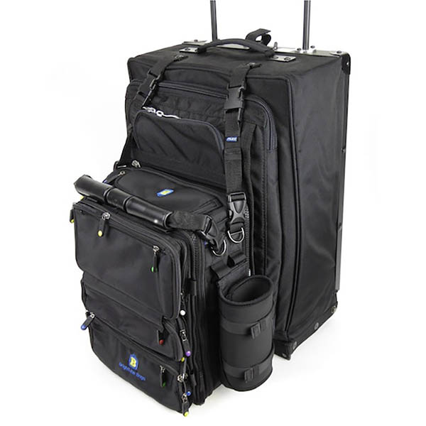 A pair of adjustable straps that allows your BrightLine Bag to be attached to the two quick-release buckles on certain models of the Luggage Works or Purdy Neat rolling suitcases. Certain models of Luggage Works and Purdy Neat suitcases come with two quick-release buckles which are intended to allow the user to attach other items. These two BrightLine Bags FLEX Luggage Works Adapter Straps allow you to attach you BrightLine Bag to the front of your suitcase. The straps are adjustable so that you can make sure that your BrightLine Bag is suspended just right so that the BrighLine Bag gets completely lifted off the ground as soon as you tip the main suitcase. This is important in order to prevent any wear on the bottom of the BrightLine Bag due to being dragged behind the suitcase. (Obvioulsy, this type of wear is not covered by your BrightLine Bags warranty.) |