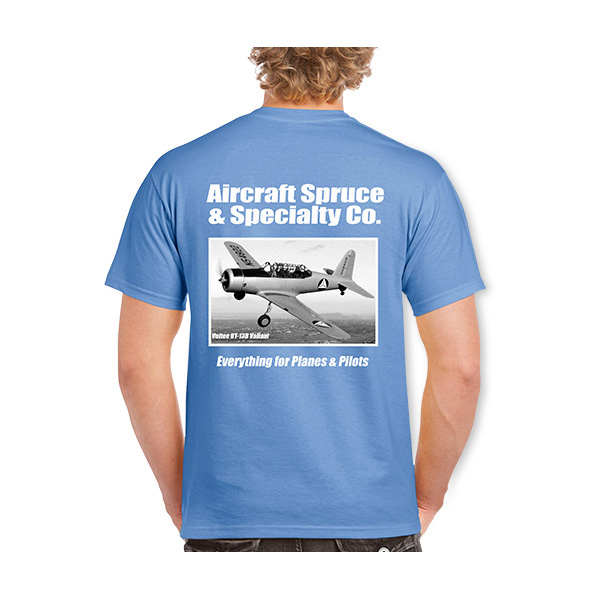 This year's Aircraft Spruce ® t-shirt features the BT-13B Vultee which is the 2019/2020 Aircraft Catalog cover airplane! This Vultee BT-13B was manufactured in Downey, CA in 1944 and was owned and flown by Bob and Flo Irwin, founders of Aircraft Spruce ®, from 1951 to 1962. It went through numerous owners over the next 53 years before it was acquired by Jim and Nanci Irwin in 2015 and restored to near original condition. For more history on this aircraft, please follow the link below: Click Here Aircraft Spruce ® BT-13B Vultee History |