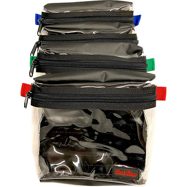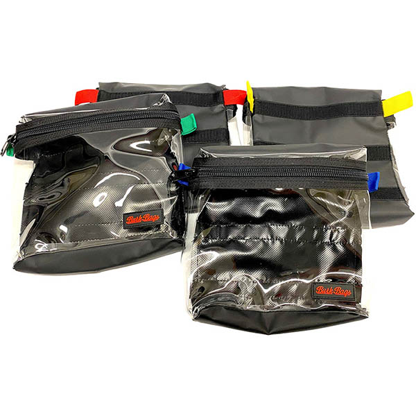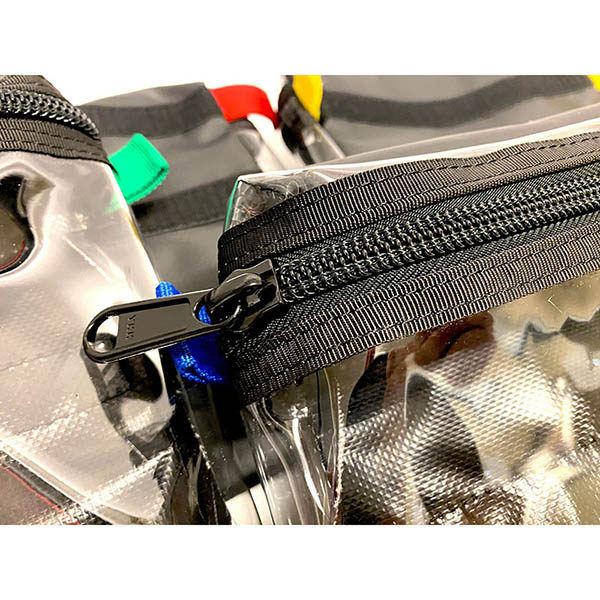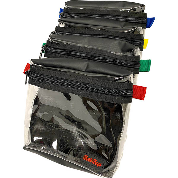 A general purpose pouch with clear front, luggage grade zipper, and Velcro on the back. Perfect for organizing cables and camera accessories. |