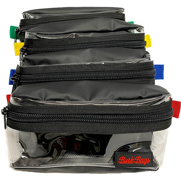 A general purpose pouch with clear front, luggage grade zipper, and Velcro on the back. Perfect for organizing cables and camera accessories. |