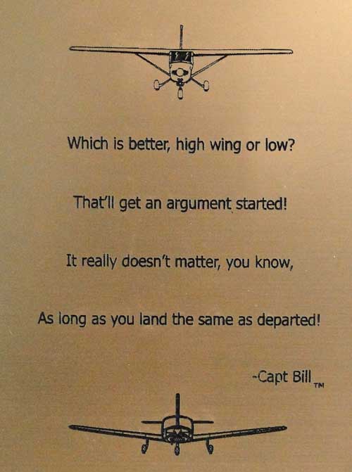 This pilot's desk plaque is the perfect gift for a pilot or addition to any decor. This sign pays tribute to the aviator in a fun way, with a short message from Capt. Bill that'll make anyone smile! Simply choose which message you'd like your plaque to display! Click here for the complete text of all versions available. 5"(H) x 4"(W) x 1-3/4"(D) |