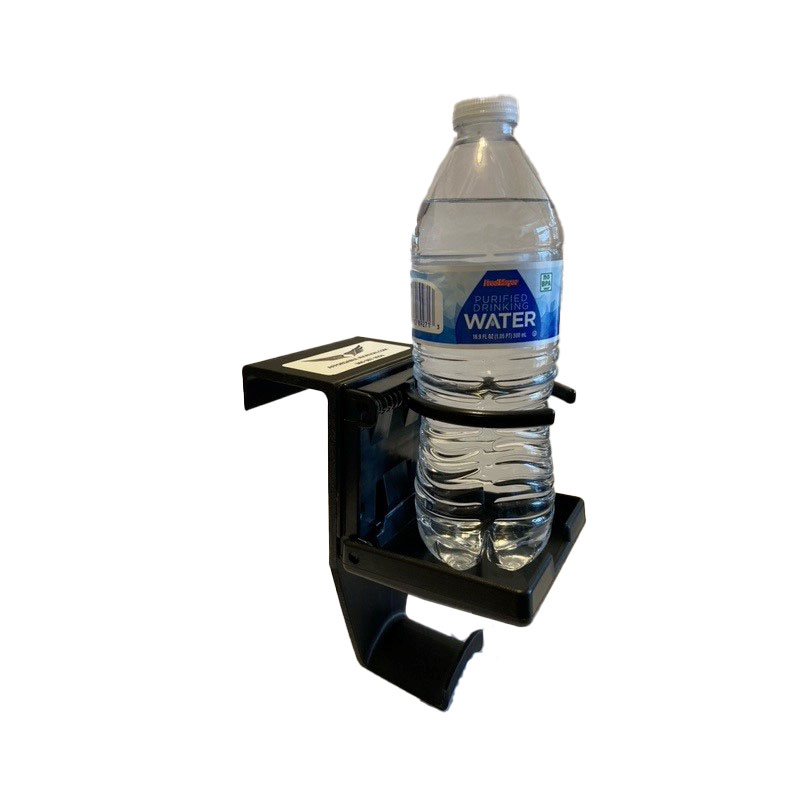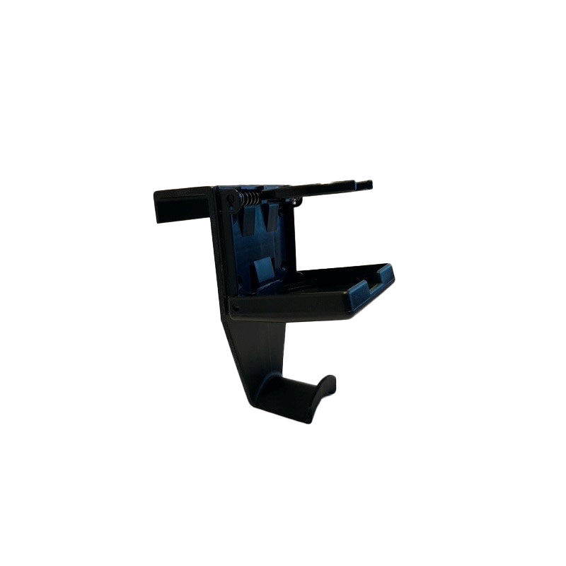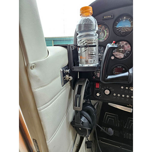 The cup holder with the headset extension is the solution for hanging your headset. It does not get in the way of the control wheel!