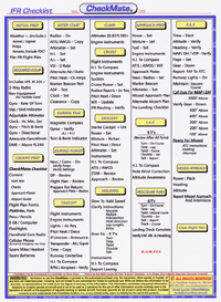 In the IFR environment organization and management lead to smoother, stress-free & safer outcomes. CheckMate IFR assists you through preflight planning to touchdown on the IFR flight. Whether youre cleared for complete approach or radar vectored to the FAF, CheckMate IFRs format will help keep the flight business orderly and functional. It is precise and specific to the different phases of those sometimes precarious flights. You will be reminded when to prepare and look ahead to each phase. A quick review of CheckMate IFR before flight will help you determine pilot and aircraft preparedness and legalities, how to give those greatly appreciated pilot reports on icing and turbulence, and what ATC expects you to do after radio failure; Professional information in a concise and orderly manner. Choose between Standard (6" x 9.5") and Compact (5" x 7"). |