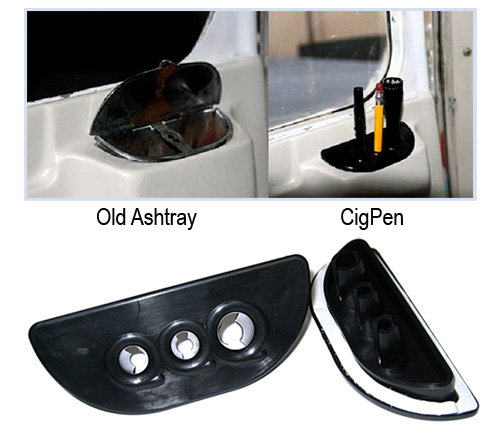 CigPen was designed to hold two standard pencils or pens along with a Mini Mag Lite AAA. For a very low cost, you can easily turn your existing ashtray into a useful device. Fits C-150, 172, 182 Cardinal. CigPen installation is easy. Measure twice and mark door panel for drilling. Install Cigpen in Ashtray hole. Drill a 9/64 hole through the panel and drill pad on the Cig pen. Using supplied screw, screw through panel and into CigPen. DOOR LOCK HANDLE When you order the CigPen, you will also receive the Cessna 150 door lock. The door lock is made from ABS Plastic. It is engraved with lock, un-lock, and indicating arrows. Fits C-150 airplanes. |