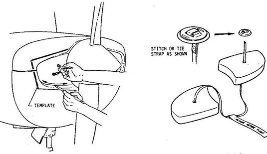 Do it yourself from this kit containing two 12" x 12" x 1" yellow closed cell foam , flag, buttons, strap & template stock. High visibility yellow closed cell foam will not retain moisture and are joined by a nylon strap with a fluorescent orange "Remove Before Flight" flag. |