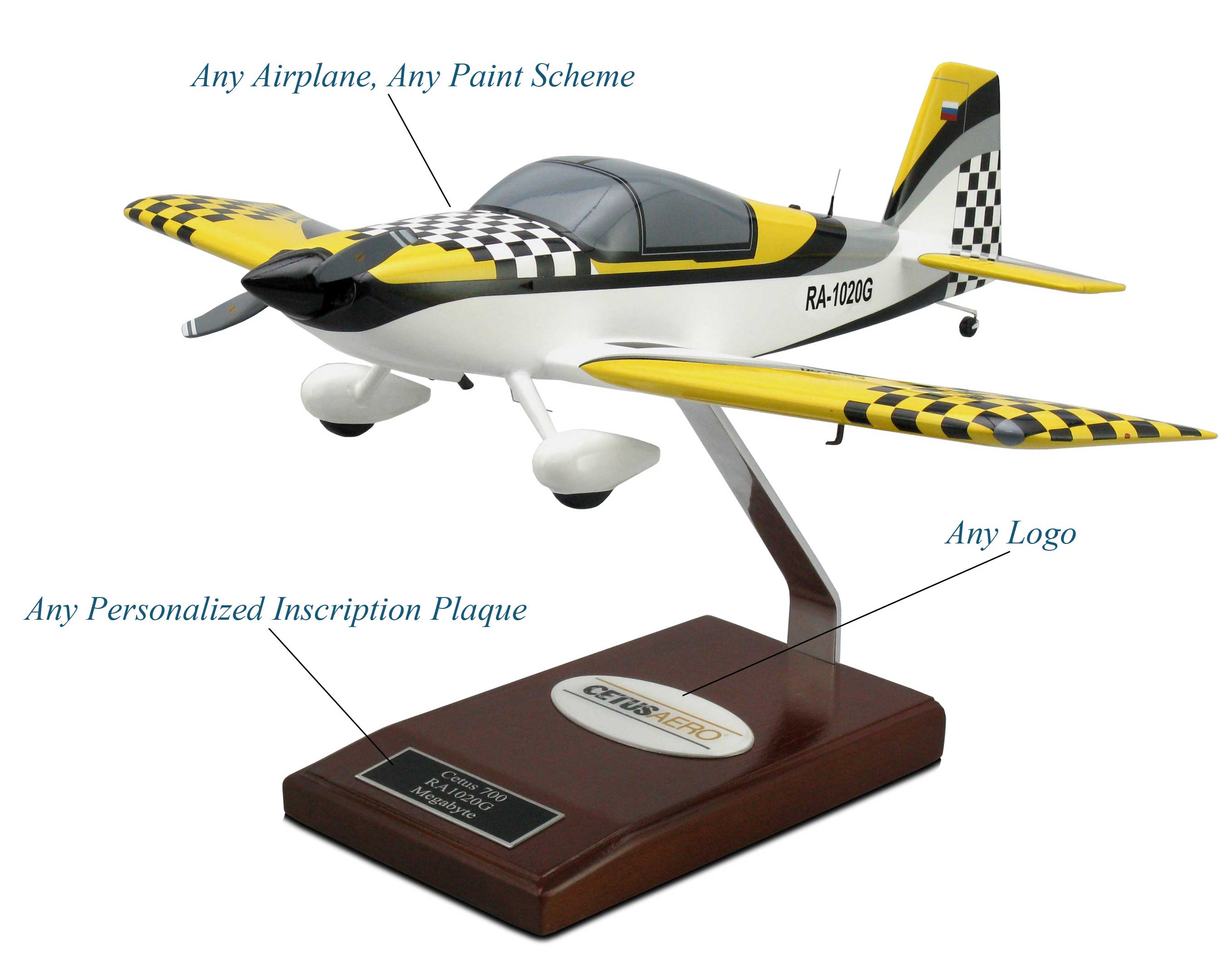 Recreate your airplane into a beautifully detailed desktop replica. Our Premium Custom Made Models are built to your exact specifications – no detail will be spared. You can have ANY aircraft recreated into a museum quality desktop model with your paint scheme, logos, registration number or any other details and markings. Complete your model with a fully customized stand including your choice of logo and a personalized inscription plaque. We offer over 3,000 different models – both military and civilian. Our desktop models are a maximum of 17” in either wingspan or length. Please allow approximately 8-10 weeks for delivery. 100% satisfaction guaranteed. IMPORTANT INFORMATION Please fill out the information form here in order to customize your model. Please submit the custom order form after placing the order online. Along with information form filled out, we also need 5 photos of the top, front, back, and both sides of your aircraft emailed to us. |