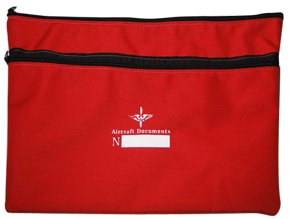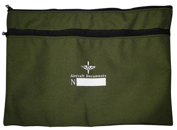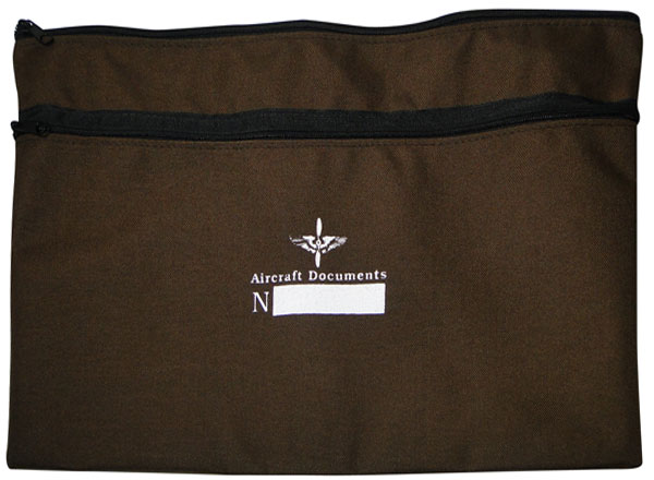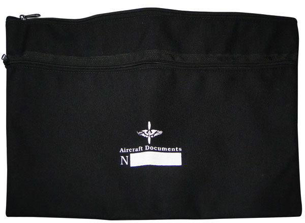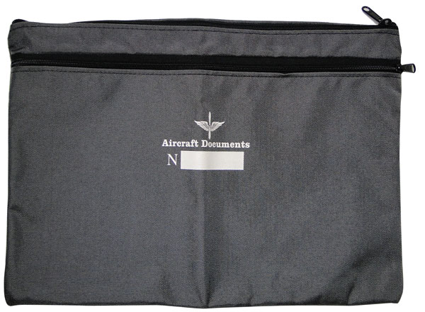 This durable, flexible blue cordura pouch is an ideal way to keep aircraft registration, insurance, log books, operating manuals, and other important documents all in one safe location. Measures 18"W x 12"H. Features top quality zipper along front side for easy access and location to mark your aircraft number on front. |