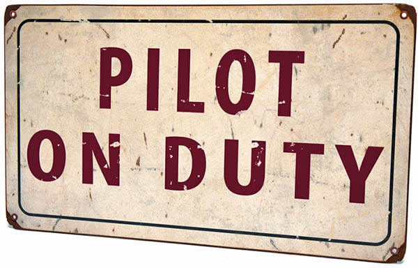 Pilot On Duty Sign. 24-gauge steel 14” x 8”. Made in the USA. |