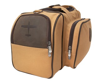 The Bush Pilot bag is canvas with leather accents, and carries an embossed leather flight outfitters patch on the front. The inside of the Flight Level has the signature Flight Outfitters orange, making it easy to find gear in a dark cockpit. There are two large padded side pockets for headsets. The large front zip pocket has 4 organization pockets, for chargers and other smaller items that tend to find their way to the bottom of other bags. The Bush Pilot Bag also features a pass through strap on the back to slide over rolling luggage handles and a leather shoulder strap pad. |