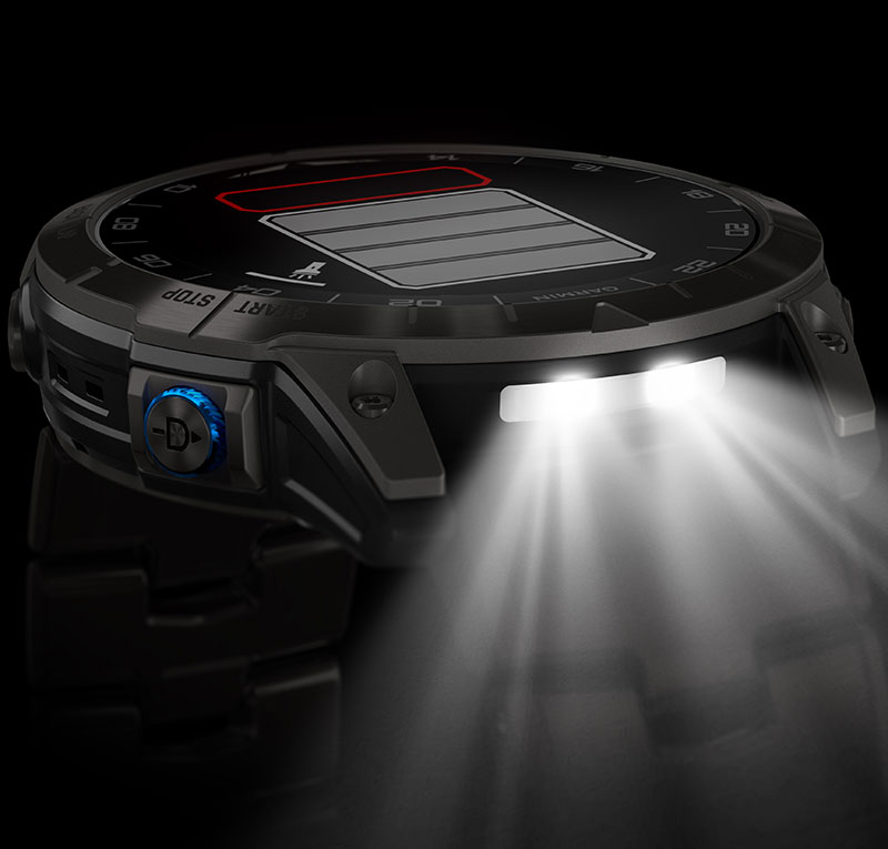 Be ready for takeoff, day or night. This premium smartwatch has a built-in flashlight, superbright AMOLED display and advanced tools for flying and fitness.