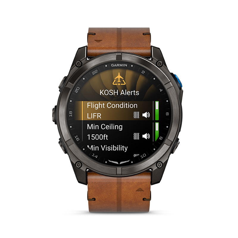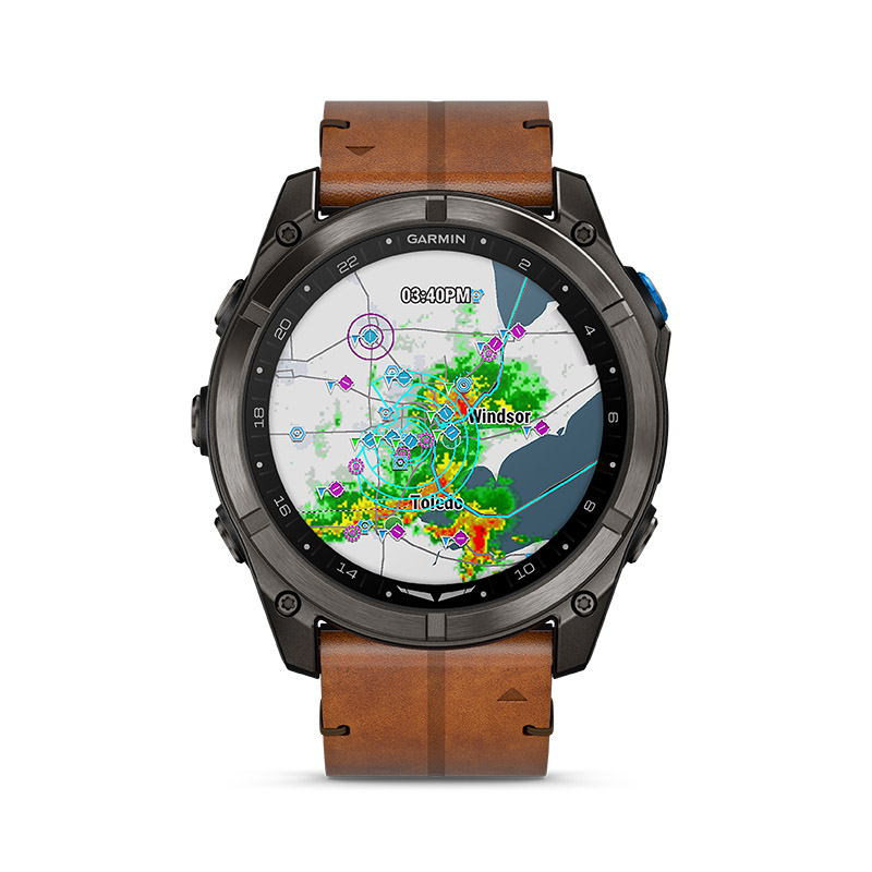 ![]() D2™ Mach 2 Pro is the ultimate Garmin aviator smartwatch, with built-in inReach® technology for satellite and LTE connectivity to keep you connected between flights (active subscription required; coverage limitations may apply; some jurisdictions regulate or prohibit the use of satellite communication devices). From your wrist, access voice calls and LiveTrack™ location sharing when you’re connected to an LTE network. Or utilize two-way messaging and interactive SOS from either an LTE or satellite link — with emergency SOS message support from Garmin ResponseSM, a 24/7-staffed international coordination center. Get convenient tools for every phase of flight, including on-device advanced aeronautical maps, HSI and Direct-to navigation. Access NEXRAD, METARs and TAFs with an LTE connection, plus set personal minimums to stay ahead of the weather. Premium touches include a durable DLC-coated titanium bezel, sapphire lens, bright 1.4" AMOLED touchscreen display and built-in LED flashlight. Advanced health and fitness features help you keep fit to fly. And with up to 24 days of battery life in smartwatch mode, D2 Mach 2 Pro is powered for life on the go. |