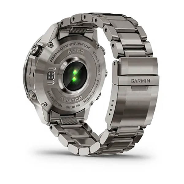 ![]() Uncompromising by Design: It’s timeless and true. This purpose-built luxury modern tool watch features a hardened swept-wing titanium bracelet, stunning AMOLED touchscreen display with traditional button controls and a 46 mm case made of Grade-5 titanium for an ultradurable design. Direct-to Navigation: Navigate straight to a location or waypoint in the worldwide aeronautical database. Or choose the Nearest function to activate a path to a nearby airport. Moving Map: Pan across the moving map with a touch, and tap on waypoints for more information. Plus, see NEXRAD radar overlaid on your route. Jet Lag Advisor:Help minimize the effects of jet lag with guidance on light exposure, sleep schedule and exercise on your next long-distance trip. Enter your travel details in the Garmin Connect™smartphone app calendar, and track how your body clock is adjusting to your new destination. Weather Reports: Access aviation weather, including METARs, TAFs and MOS, to see winds, visibility, barometric pressure and more. Meteogram Feature: See graphical indications of MOS forecasts for specific airports2, including projections for temperature trends, wind, dewpoint, sky cover, precipitation probability and more. HSI Course Needle: Follow the instrument-like HSI course needle to your destination, so you can easily see if you’re left or right of your desired flight path. Pulse OX Sensor: Check with Pulse Ox to gain awareness of how well your body's oxygen levels are adjusting to the thinner air at higher altitudes. Airport Information: View runway orientation (including wind components1), lengths and airport frequencies as you approach your destination. Barometric Altimeter: See when you’ve reached your desired altitude — or get a vibration alert when you reach an altitude where supplemental oxygen may be required. Flight Logging: PAutomatically start tracking flights on takeoff. Then automatically transfer date, duration, total flight time and route to your flyGarmin.com® account1. Emergency Mode: Activate to see your best glide speed, estimated glide distance and glide time during an engine-related issue. View a bearing pointer to the nearest airport, and see a list of alternate airports. Configurable Alerts: Set customizable notifications for new METAR and TAF reports, when destination airport conditions change, when crosswind components exceed a threshold and more. Alerts and Timers: Manually set vibrating alerts to remind you when it's time to switch fuel tanks or perform other time-critical tasks. UTC and Time Zones: Stay on schedule when you travel with a UTC pointer on the watch face plus multiple time zone displays. Flight Plan Transfer: Transfer your flight plan from the Garmin Pilot™ app1 to the MARQ Aviator watch, and view the list of waypoints included in your route. Morning Report: Receive an overview of your sleep, recovery and training outlook as soon as you wake up — alongside HRV status, training readiness and weather. You can even customize your report to show what you want to see. Wrist-Based Heart Rate: The watch constantly samples your heart rate2, and will alert you if it stays too high or too low while you’re at rest. It also helps gauge how hard you work during activities — even while swimming. Respiration Tracking: See how you’re breathing throughout the day, during sleep, and during breathwork and yoga activities. Sleep Score and Advanced Sleep Monitoring: Get a full breakdown of your light, deep and REM sleep stages2. View it all on a dedicated widget that includes your sleep score and insights. Body Battery Energy Monitoring: Optimize your body’s energy reserves by using heart rate variability, stress, sleep and other data to gauge when you’re ready to be active or when you may need to rest. Stress Tracking: Heart rate variability is used to calculate your stress level score, so you can see if you’re having a calm, balanced or stressful day. Sports Apps: Use preloaded activity profiles for trail running, swimming, running, biking, hiking, rowing, skiing, golfing, surfing, indoor climbing and more. Training Readiness: From the moment you wake up, get a readiness score based on your sleep quality, recovery, training load and more, so you can determine whether it’s a good day to go hard — or take it easy. HRV Status: Gain a deeper understanding of your overall health, training and recovery through heart rate variability while you sleep1, based on technology developed by our Firstbeat Analytics™ team. Training Status: Using new indicators such as HRV status, your recent exercise history and performance, get an easy insight into your overall effort — and whether you’re training productively, peaking or strained. Wrist-Based Running Dynamics: This smartwatch measures crucial running metrics such as cadence, stride length, ground contact time and more. Animated Workouts: This watch features easy-to-follow, animated cardio, strength, yoga and Pilates workouts you can view on the watch screen. Choose from preloaded animated workouts, or download more from the Garmin Connect™ online community when paired with your compatible device. Garmin Coach: These free adaptive training plans feature guidance from expert coaches and adapt to you and your goals. Workouts sync right to your watch from Garmin Connect. PacePro Technology: A first-of-its-kind PacePro feature helps keep you on pace with grade-adjusted guidance as you run a course Grade-Adjusted Pace: Don’t run out of steam before the activity is over. Understand how to adjust your pace over varying terrain to perform according to your plan. VO2 Max: Train smarter with VO2 max, an indicator of how you can expect to perform. It adjusts for trail running and accounts for changes in performance that could be caused by heat or altitude. Multicontinent Topographic Maps: TopoActive maps for your local region are preloaded to keep your explorations on track. View terrain contours, elevations, summits