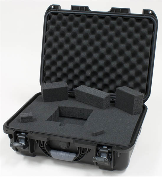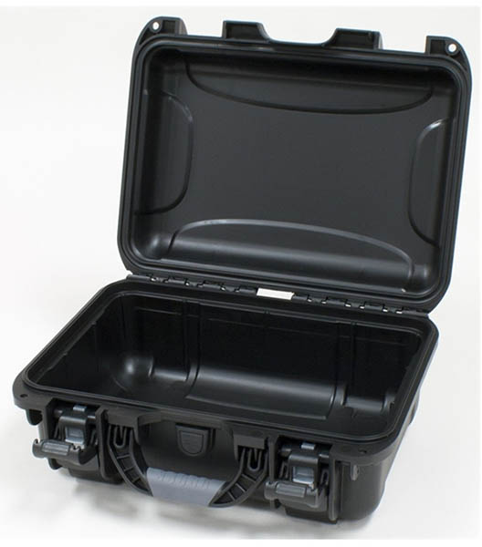 Black waterproof injection molded case with interior dimensions of 17" X 11.8" X 6.4".