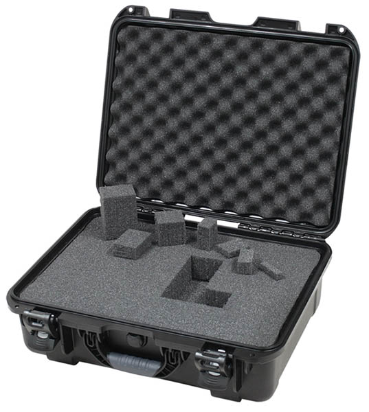 Black waterproof injection molded case with interior dimensions of 18" x 13" x 6.9".
