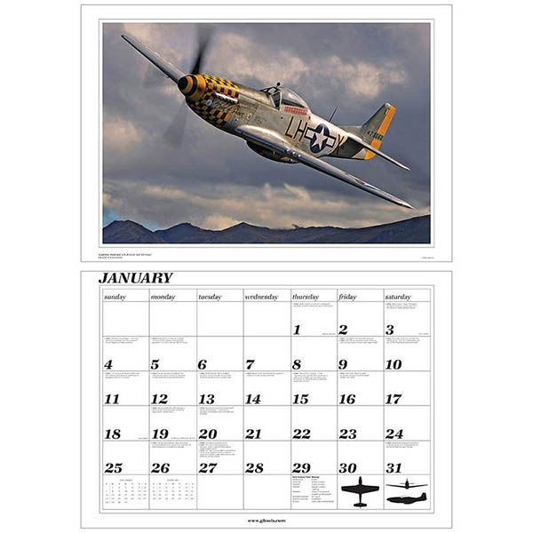 This is a great calendar that I get every year. A nice, big picture of a beautiful WWII warbird and interesting historical happenings listed. I get one every year and thoroughly enjoy it.