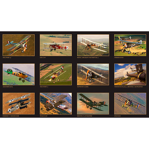 Featuring 12 magnificent air-to-air color photographs of the combat aircraft of World War I by Master Aviation Photographer Philip Makanna. Each month is suitable for framing. Includes a unique chronological history of the aviation events of the war, as well as specifications and silhouettes. Each page is 20" x 14" and opens to 20" x 28". |