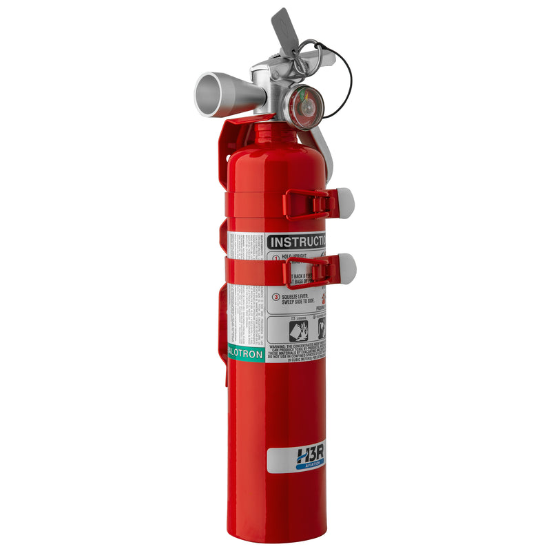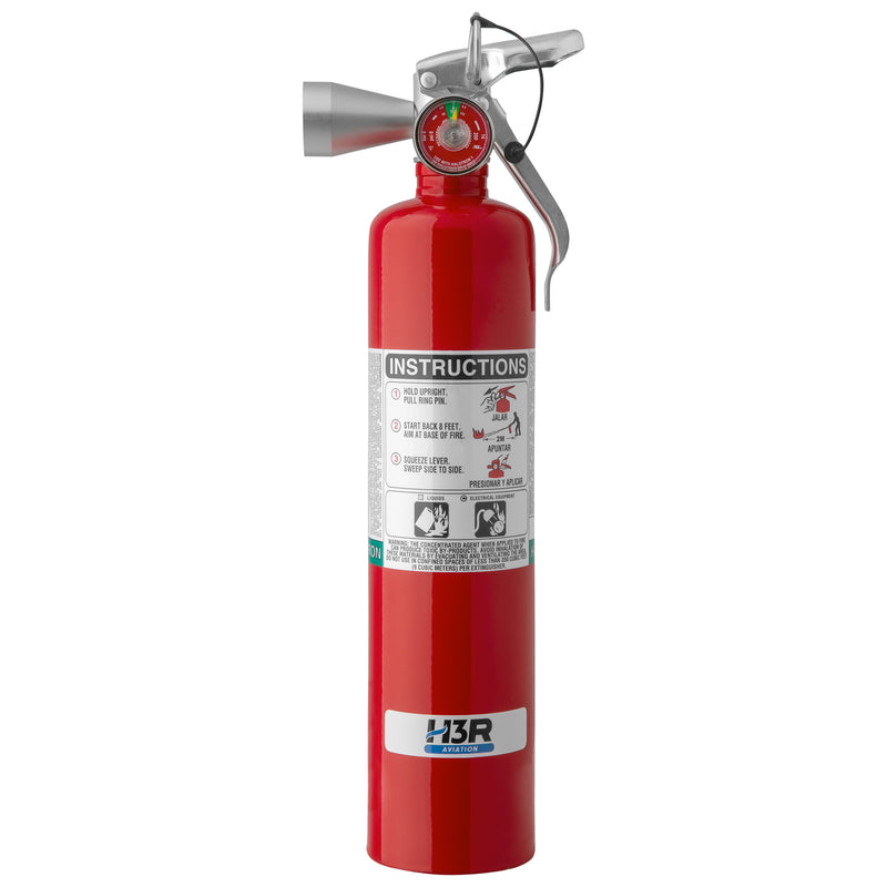 Just like Halon 1211, Halotron® 1 (HCFC Blend B) expels as a rapidly evaporating liquid and leaves no residue. Model B385TS effectively extinguishes Class B and C fires by cooling and smothering and it will not conduct electricity back to the operator. Recommended for a 1-6 person aircraft, including the pilot.