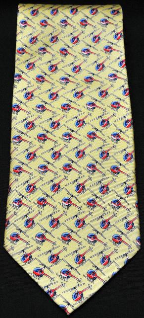 This tie features helicopters on yellow fabric.