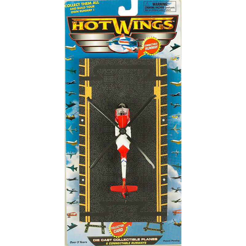 Hot Wings UH-60 Coast Guard Helicopter with connectable runway. Every Hot Wings plane comes with a collector card, plus proprietary connectible runway system that allows collectors to build their own runways and airports. Runways, taxiways and hangar accessories, make Hot Wings the most exciting collectible planes available. Seven distinct series, dating from the earliest Bi Planes to the newest Space Planes, offers something for every aviation enthusiast. Age: Over 3 years due to small parts. |