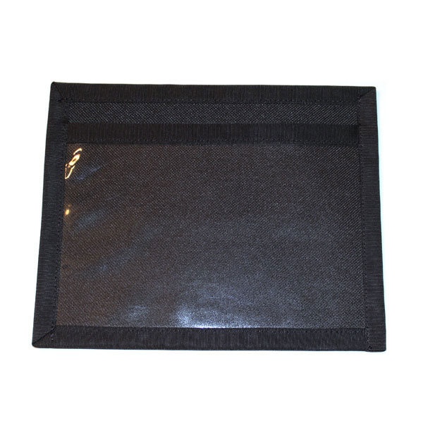 5" x 7" License holder made of 600 Denier, PVC backed, black nylon construction with a clear plastic window to display ownership certificates. |