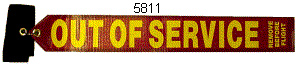 "Out Of Service" 3" x 24", yellow printing on red reinforced vinyl with grommet and ring. 2" securing strap with grommet and velcro. |