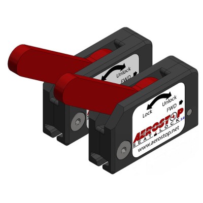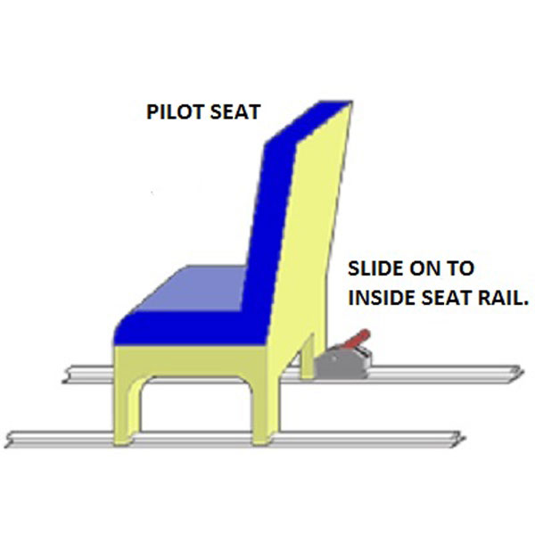 A unique cam style lock that locks in place when the handle is firmly pressed down and makes contact with the seat rails. Version 2.1 is fully adjustable to accommodate between different seat rail manufacturers, specifically Cessna and McFarlane. Adjustments are also useful when slight wear is experienced on seat rails. This product has been FAA-PMA approved. |