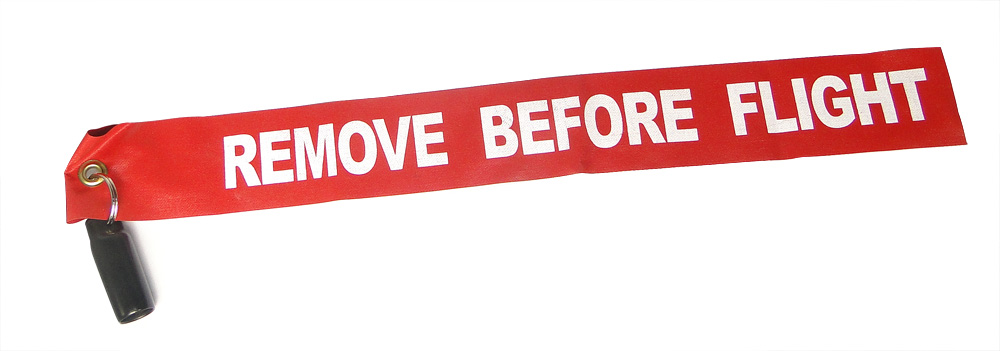 Nelson pitot 5/8 tube cover with white letter REMOVE BEFORE FLIGHT on red banner |