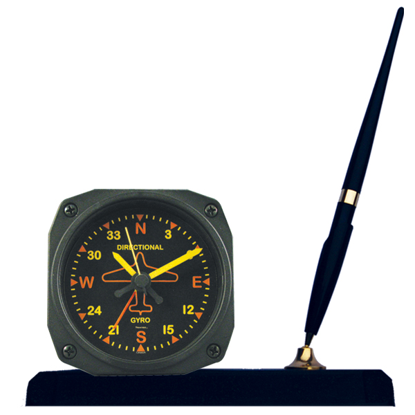 Each of the vintage aviation desk pen sets are made to simulate as closely as possible a primary flight instrument. Each desk pen set features the actual shape of an aircraft instrument and a dial, which closely represents that of a particular flight instrument.