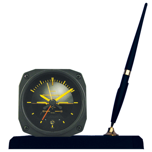 Each of the vintage aviation desk pen sets are made to simulate as closely as possible a primary flight instrument. Each desk pen set features the actual shape of an aircraft instrument and a dial, which closely represents that of a particular flight instrument. |