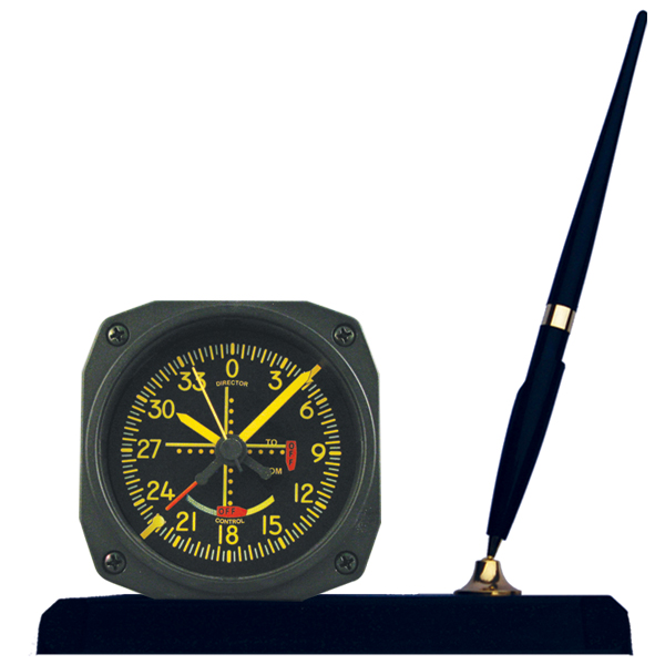 Each of the vintage aviation desk pen sets are made to simulate as closely as possible a primary flight instrument. Each desk pen set features the actual shape of an aircraft instrument and a dial, which closely represents that of a particular flight instrument. |