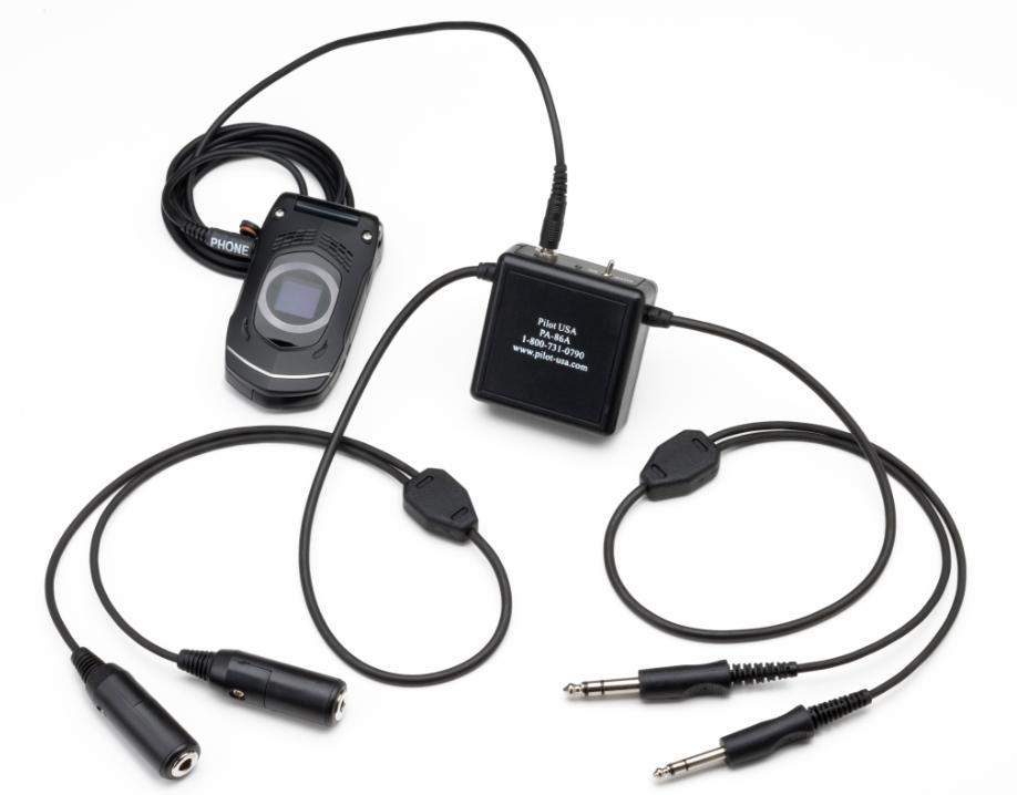 Amplified Cell/Satellite Phone Adapter for General Aviation (twin plugs): Allows use of cell phone with GA twin plug headset (Battery powered). Can be used to record outbound transmissions to phone. Does not send inbound ATC calls to the phone. |