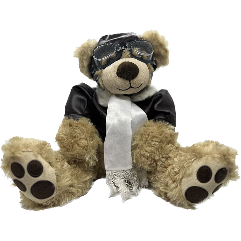 Cute plush pilot bears, that comes dressed in open-cockpit attire, including a "leather" jacket, helmet, goggles and a scarf. Also, his arms, legs, and head all move! Perfect for your little aviator! Colors may vary. Approximate Dimensions: