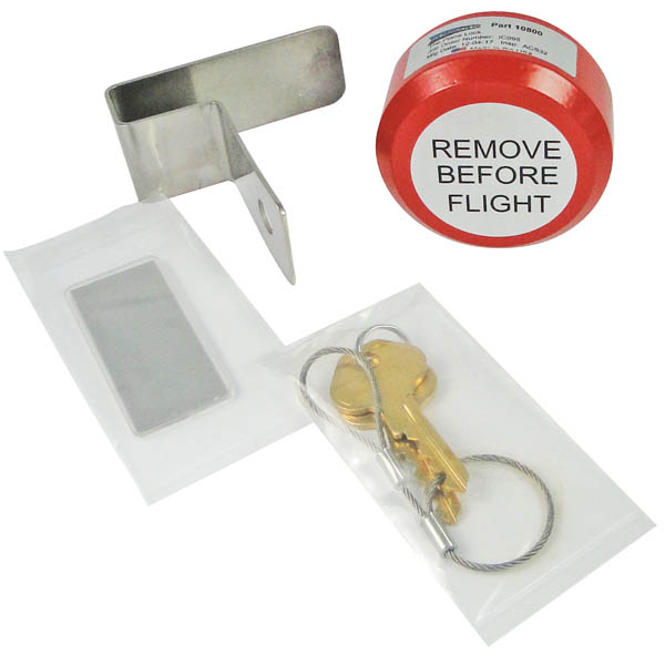 your doors open and provides an added measure of security against break-ins. No tools or STC required. From outside the aircraft, the pilots door is locked by reaching through the window ( prior to closing it) and pushing down the door safety handle. Then, slip the Plane Lock over the window sill and lock the window shut. Note: The Plane Lock will not work with the modified bubble window for photography. |