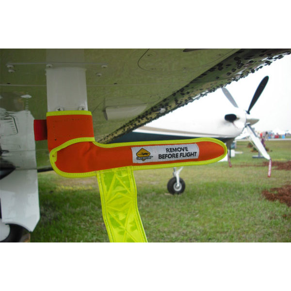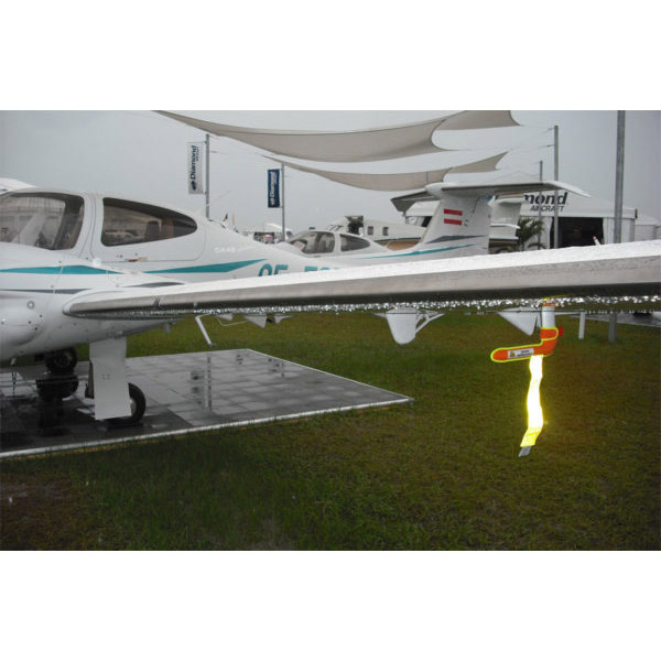 Finally, a specially designed durable pitot cover for Diamond DA42 and Pilatus PC12 pitot tubes. It stands out in daylight or darkness under all weather conditions, so it can’t be missed. Large sewn-on Velcro strips wrap around the tube base to keep it securely in place under all conditions. |